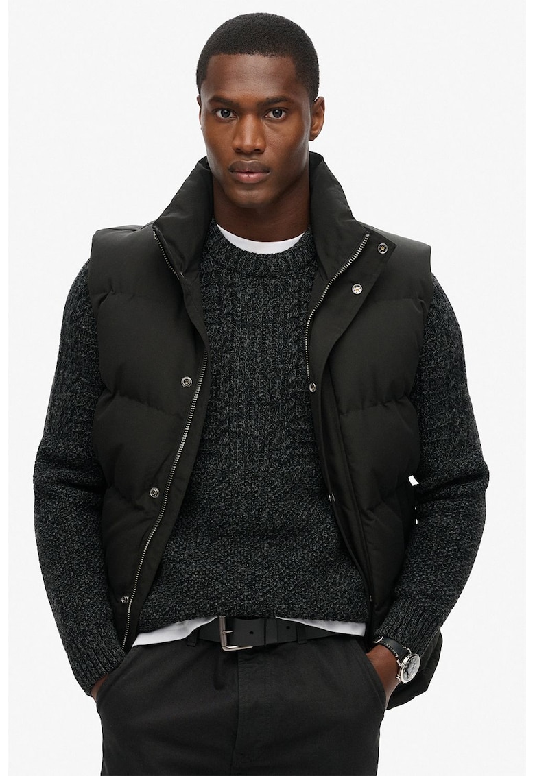 Caracteristici Tip produs: vesta Culoare: negru Material: poliester Croiala: regular fit Imprimeu: uni Gluga: fara gluga Lungime maneca: fara maneca Sistem inchidere: fermoar