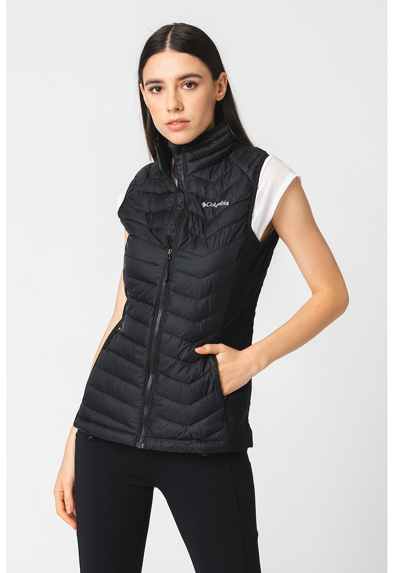 Caracteristici Tip produs: vesta Culoare: negru Imprimeu: uni Material: nylon Guler: inalt Gluga: fara gluga Lungime maneca: fara maneca Buzunare: 2 Detalii: detaliu cu logo