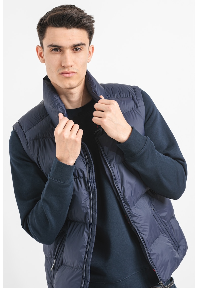 - bleumarin Material: poliamida Croiala: regular fit Imprimeu: uni Gluga: fara gluga Guler: mediu Lungime maneca: fara maneca Buzunare: laterale