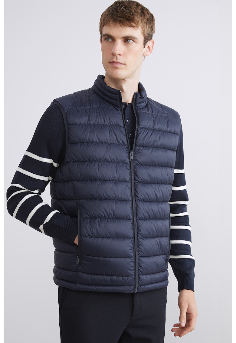 Caracteristici Tip produs: vesta Culoare: bleumarin Material: poliester Croiala: regular fit Imprimeu: uni Gluga: fara gluga Lungime maneca: fara maneca Buzunare: 2 laterale Sistem inchidere: fermoar Compozitie Exterior: 100% poliester Captuseala: 100% poliester Umplutura: 100% poliamida