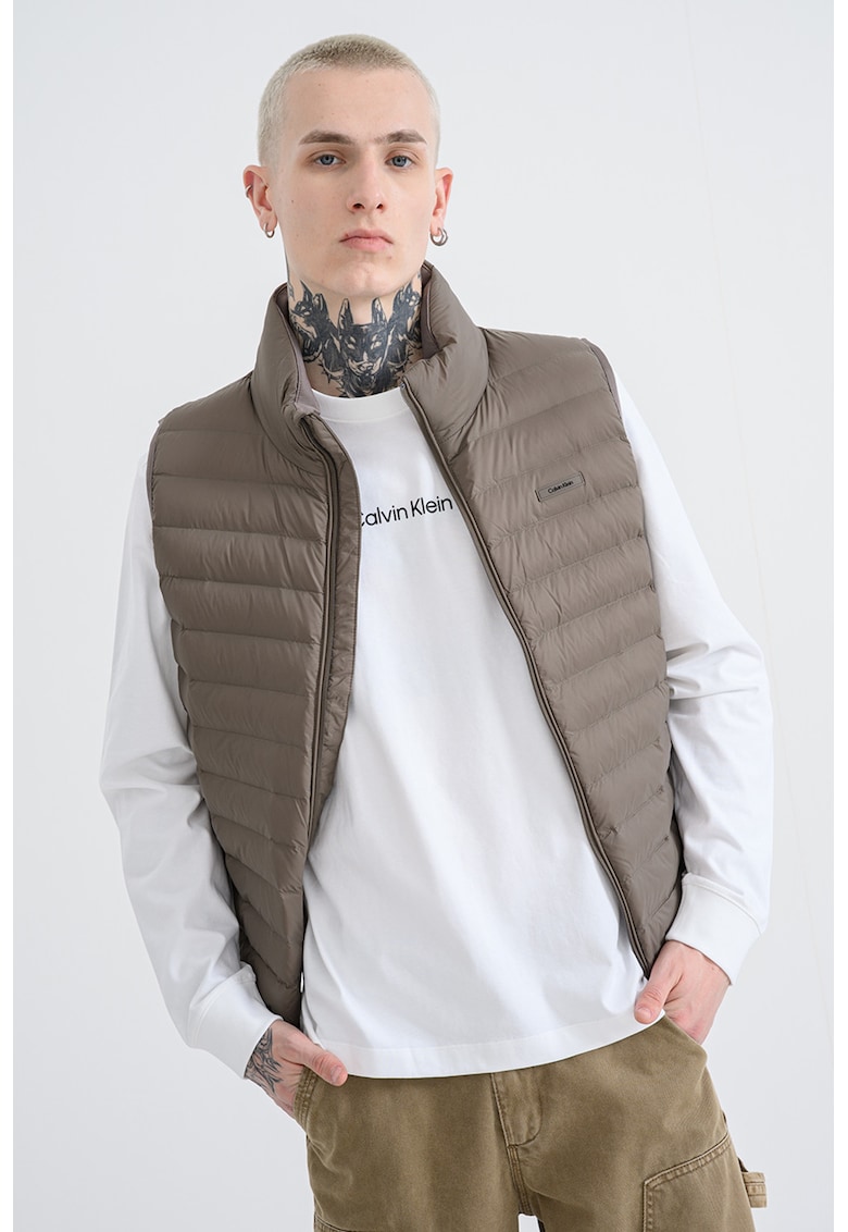 Caracteristici Tip produs: vesta Culoare: verde militar inchis Material: nylon Croiala: regular fit Imprimeu: uni Guler: inalt Lungime maneca: fara maneca Sistem inchidere: fermoar Compozitie Exterior: 100% nailon Info model Modelul poarta un produs de marimea M. Marimi model: 188 cm inaltime