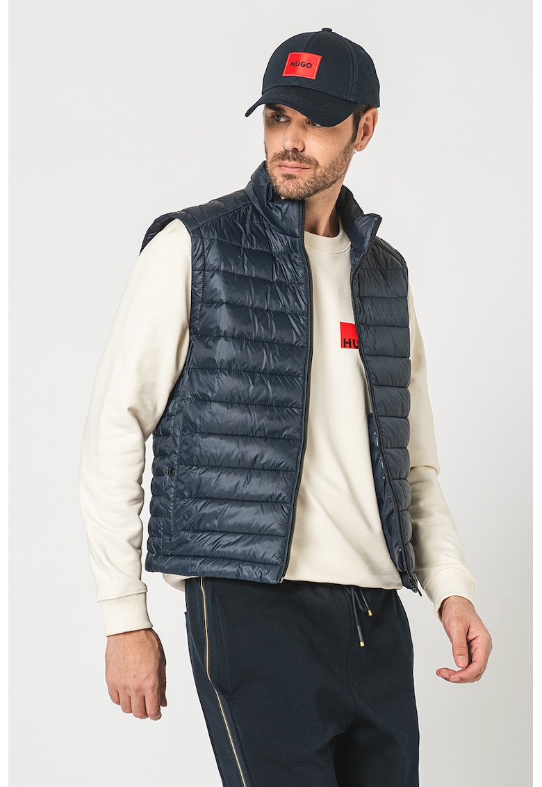 Caracteristici Tip produs: vesta Culoare: bleumarin Material: poliamida Croiala: regular fit Imprimeu: uni Gluga: fara gluga Guler: scurt Lungime maneca: fara maneca Buzunare: 2 frontale Detalii: logo discret pe piept Sistem inchidere: fermoar Compozitie Exterior: 100% poliamida Info model Modelul poarta un produs de marimea M/48 EU. Marimi model: 195 cm inaltime