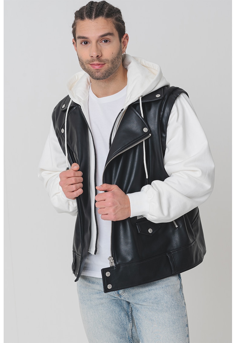- negru Material: piele ecologica Imprimeu: uni Guler: cu revere decupate Buzunare: multiple Sistem inchidere: fermoar Compozitie Exterior: 56% poliuretan