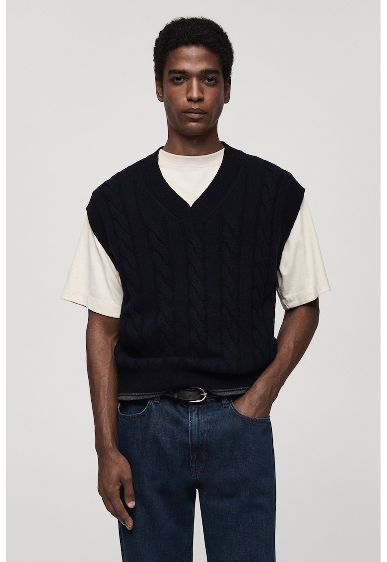 - tricot Croiala: regular fit Sistem inchidere: fara inchidere Model: in v Lungime maneca: fara maneca Detalii: design cu torsade Compozitie Exterior: 60% poliamida