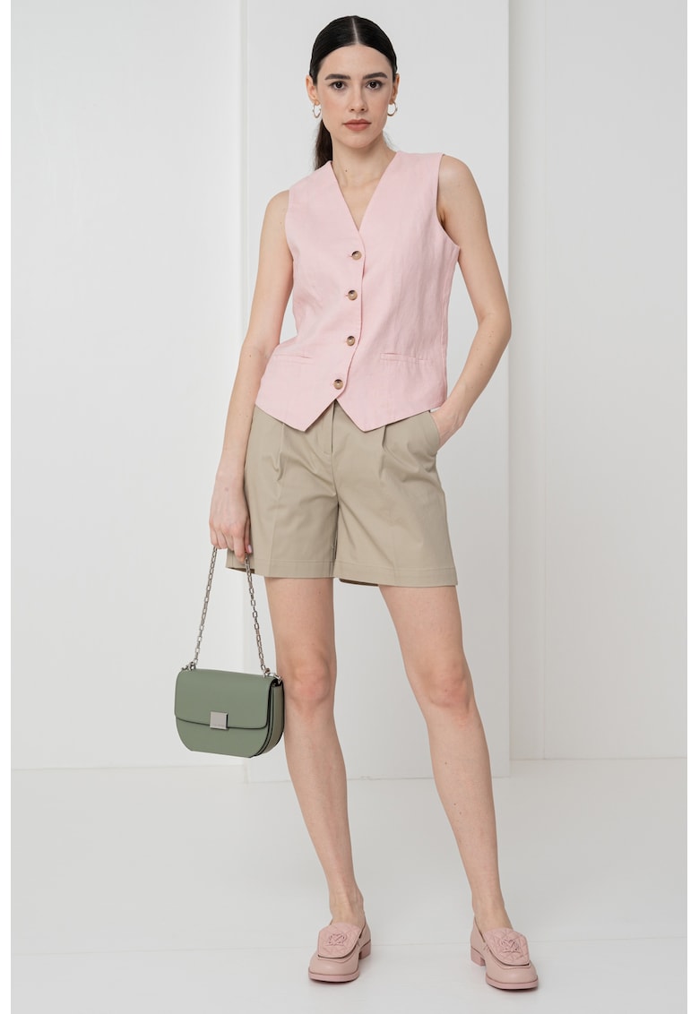 Caracteristici Culoare: roz pal Stil: casual Croiala: regular fit Material: in Imprimeu: uni Lungime maneca: fara maneca Sistem inchidere: nasturi Compozitie Exterior: 100% in Captuseala: 100% bumbac Info model Modelul poarta un produs de marimea S/40 IT. Marimi model: 177 cm inaltime