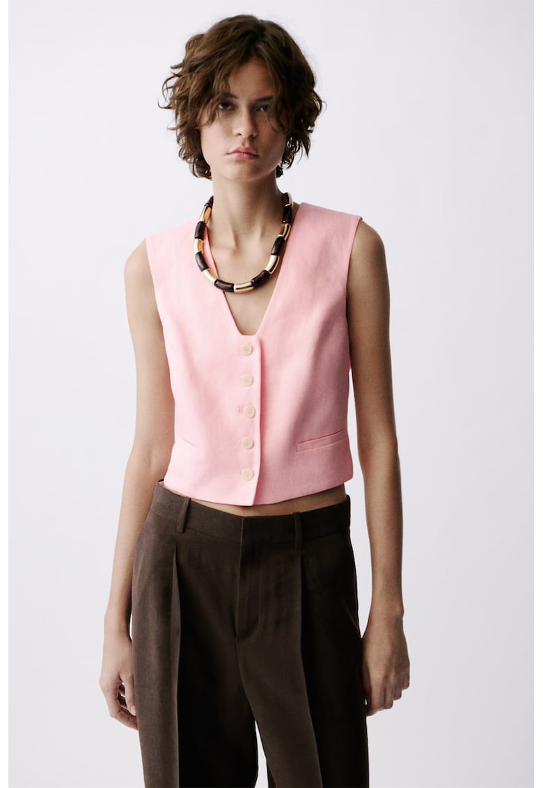 Caracteristici Tip produs: vesta Culoare: roz prafuit Imprimeu: uni Material: in Croiala: regular fit Gluga: fara gluga Lungime maneca: fara maneca Detalii: marimile 3xl