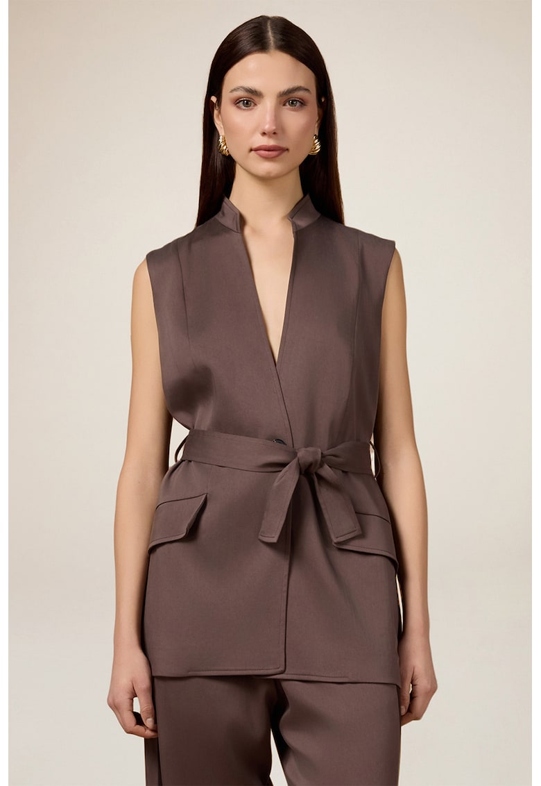 Caracteristici Tip produs: vesta Culoare: maro fango Imprimeu: uni Material: viscoza