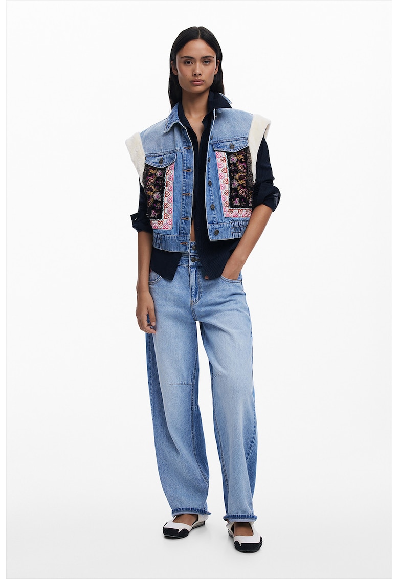 - fucsia Imprimeu: floral Material: denim Croiala: lejer Guler: ascutit Gluga: fara gluga Lungime maneca: fara maneca Sistem inchidere: nasturi Compozitie Exterior: 100% bumbac