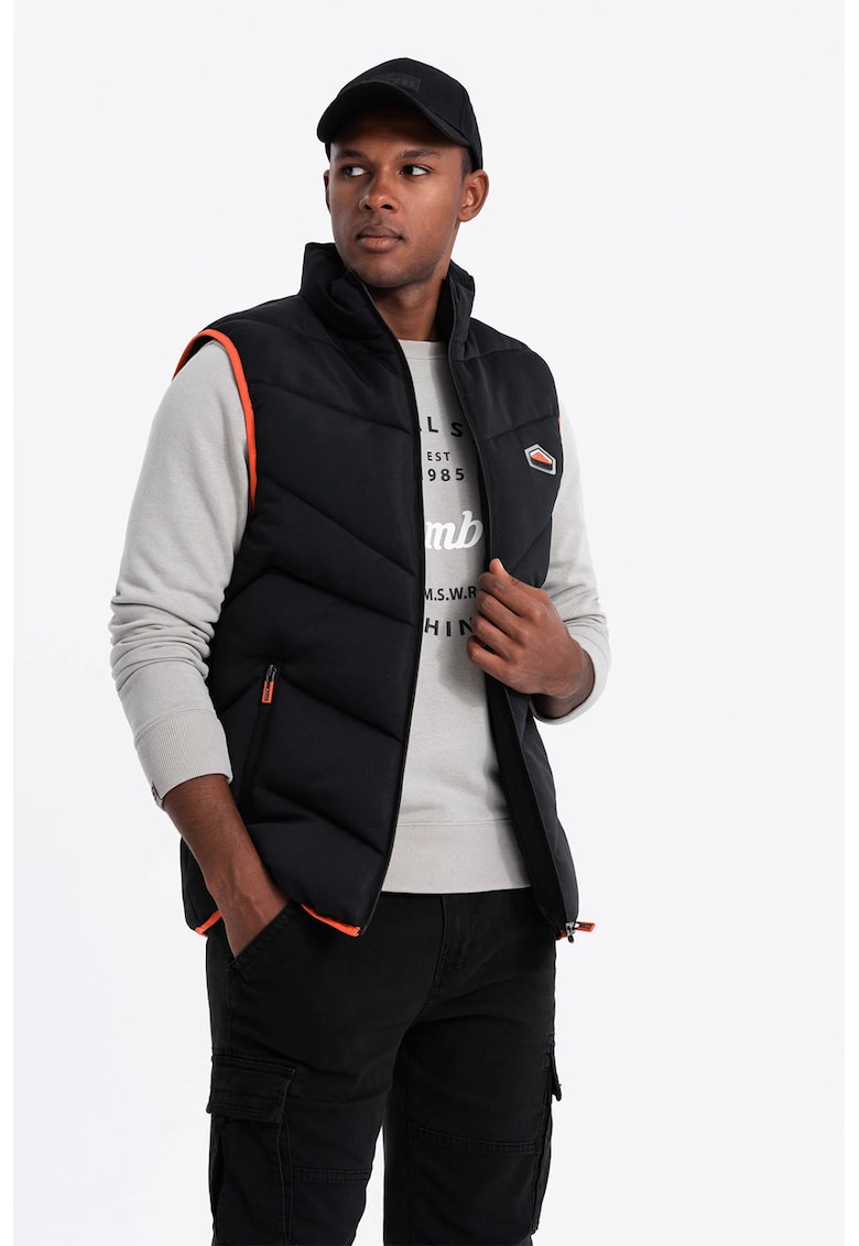 Caracteristici Tip produs: vesta Culoare: negru Material: sintetic Croiala: regular fit Imprimeu: uni Gluga: fara gluga Guler: inalt Lungime maneca: fara maneca Buzunare: cu fermoar Detalii: design matlasat Sistem inchidere: fermoar Compozitie Exterior: 100% poliester