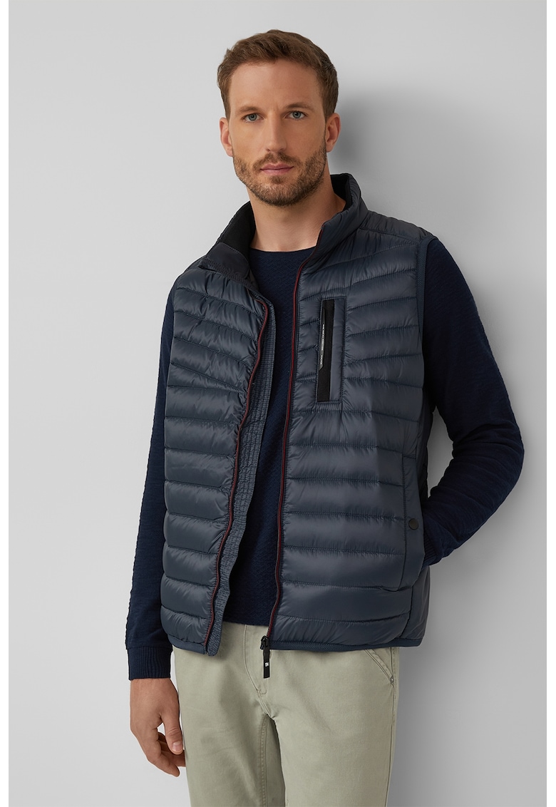 Caracteristici Tip produs: vesta Culoare: bleumarin Material: poliester Croiala: regular fit Imprimeu: uni Gluga: cu gluga Guler: scurt Lungime maneca: fara maneca Buzunare: laterale