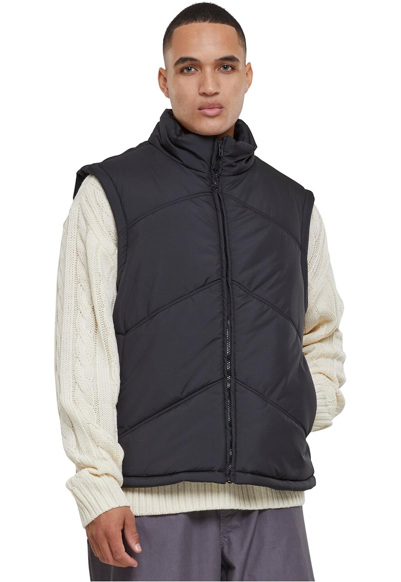 Caracteristici Tip produs: vesta Culoare: negru Material: sintetic Croiala: regular fit Imprimeu: uni Gluga: fara gluga Guler: mediu Lungime maneca: fara maneca Buzunare: frontale Detalii: design matlasat Sistem inchidere: fermoar Compozitie Exterior: 100% poliester Captuseala: 100% poliester Umplutura: 100% poliester