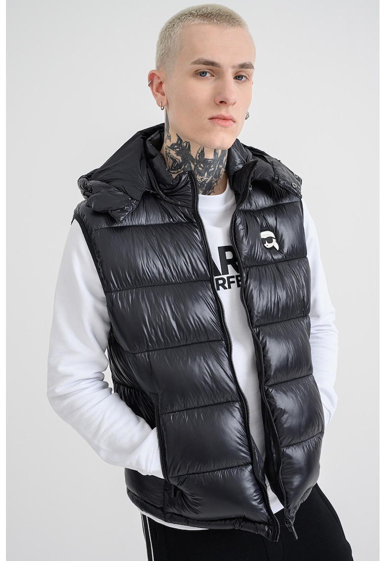 - logo Gluga: cu gluga Guler: mediu Lungime maneca: fara maneca Buzunare: cu fermoar Detalii: aspect matlasat