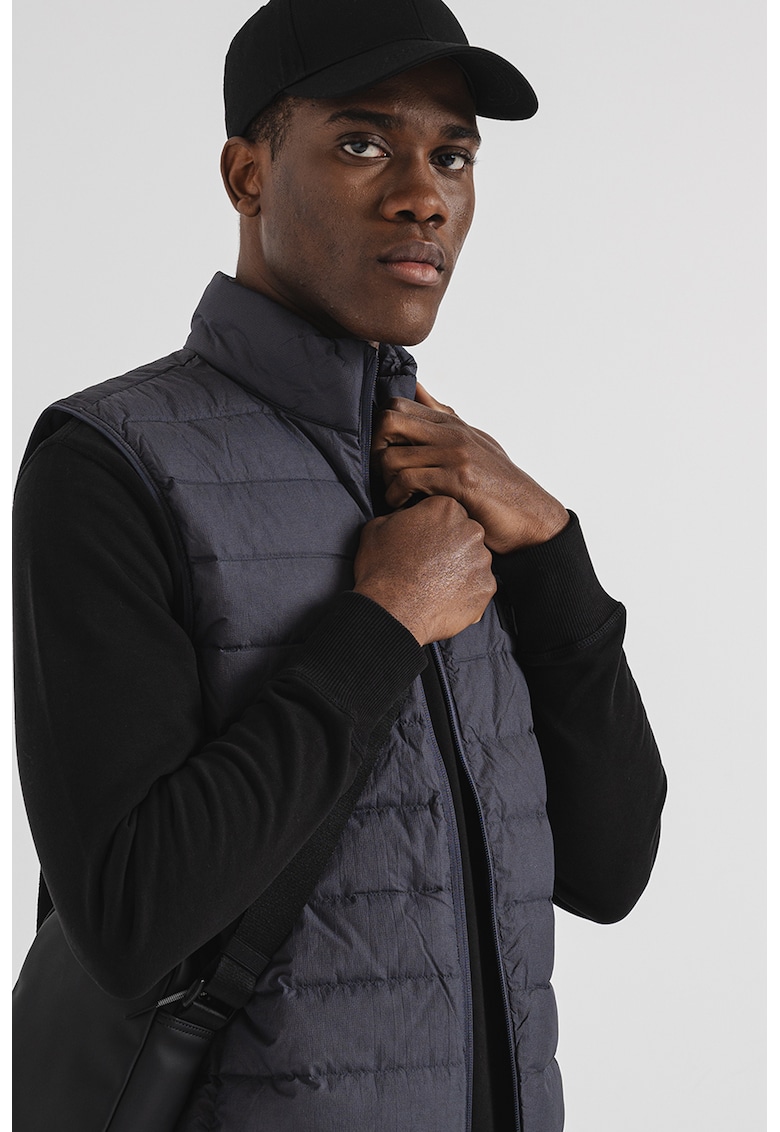 Caracteristici Tip produs: vesta Culoare: gri carbune Material: nylon Croiala: regular fit Imprimeu: uni Gluga: fara gluga Lungime maneca: fara maneca Buzunare: 2 laterale Detalii: detaliu logo pe piept