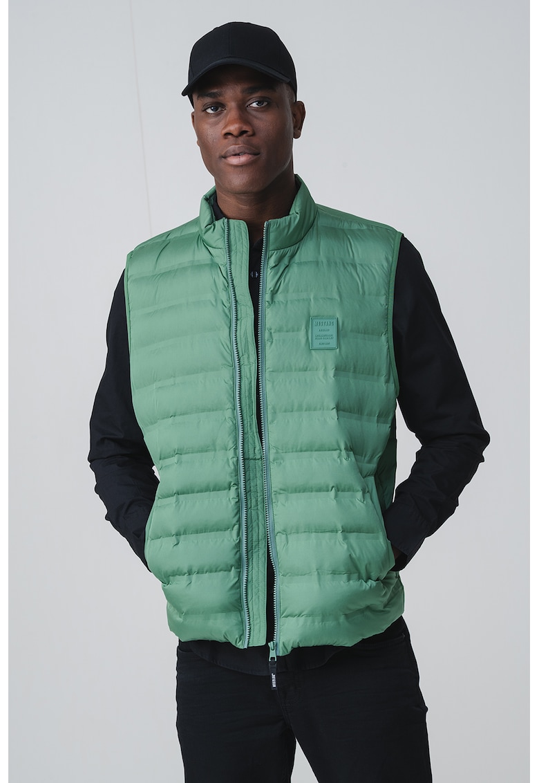 Caracteristici Tip produs: vesta Culoare: verde Material: poliester Croiala: regular fit Imprimeu: uni Gluga: fara gluga Guler: mediu Lungime maneca: fara maneca Sistem inchidere: fermoar Compozitie Exterior: 100% poliester Info model Modelul poarta un produs de marimea M. Marimi model: 184 cm inaltime