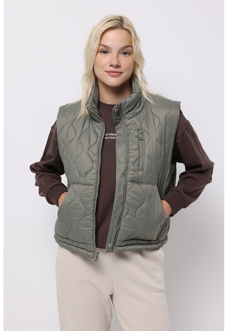 Caracteristici Tip produs: vesta Culoare: kaki Imprimeu: uni Material: nylon Croiala: regular fit Guler: mediu Gluga: fara gluga Lungime maneca: fara maneca Buzunare: 3 Sistem inchidere: fermoar
