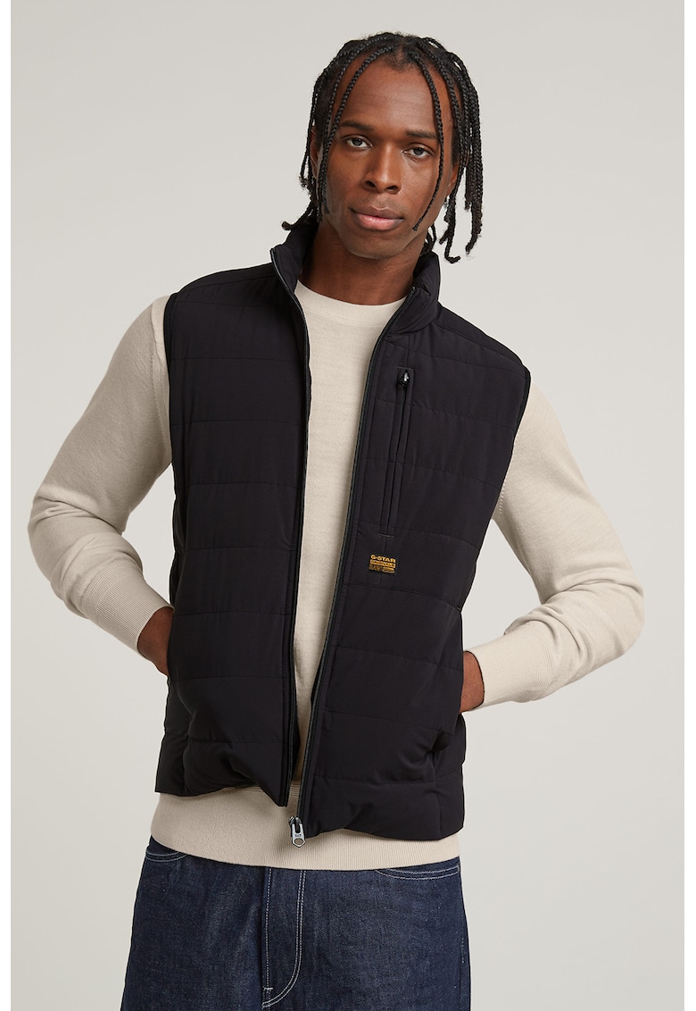 Caracteristici Tip produs: vesta Culoare: negru Material: sintetic Croiala: regular fit Imprimeu: uni Gluga: fara gluga Guler: mediu Lungime maneca: fara maneca Buzunare: frontale