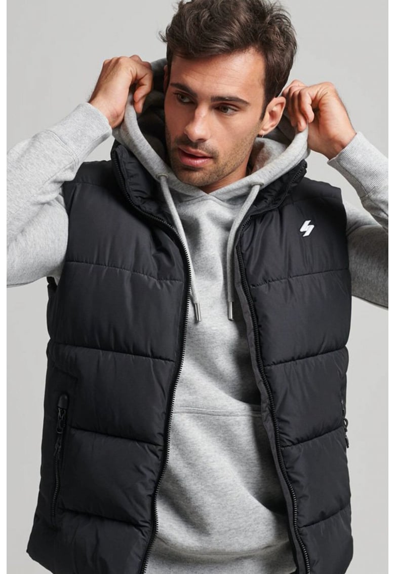 Caracteristici Culoare: negru Material: sintetic Croiala: regular fit Imprimeu: uni Gluga: fara gluga Lungime maneca: fara maneca Buzunare: cu fermoar