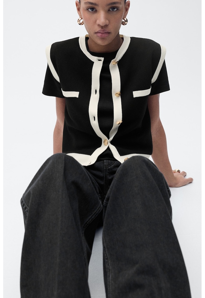 - viscoza Gluga: fara gluga Lungime maneca: fara maneca Detalii: terminatii contrastante Sistem inchidere: nasturi Compozitie Exterior: 72% viscoza
