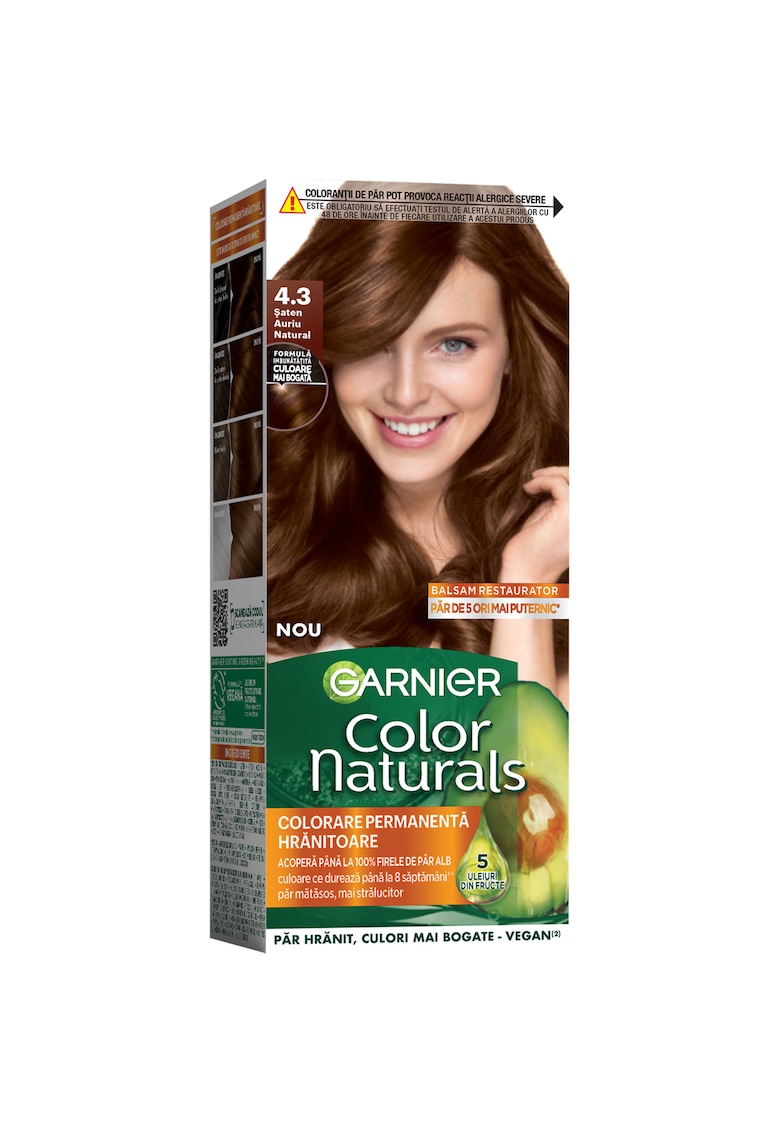 Caracteristici generale Zona corporala: par Tip: clasic Tip produs: vopsea de par Set: nu Rezistenta: permanenta Componenta: cu amoniac Forma/Textura: crema Tip par: normal Gama: color naturals Beneficii: hranire Numar bucati/set: 1 Continut pachet: 1 x vopsea Cantitate: 112 ml Culoare Nuanta: saten auriu Cod culoare: 4.3 Culoare: saten