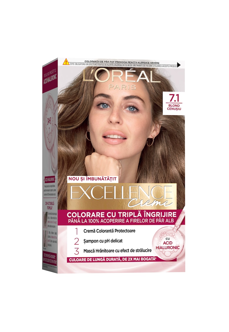 Caracteristici generale Zona corporala: par Tip: clasic Tip produs: vopsea de par Set: nu Rezistenta: permanenta Componenta: cu amoniac Forma/Textura: crema Tip par: normal Gama: excellence creme Beneficii: revitalizare