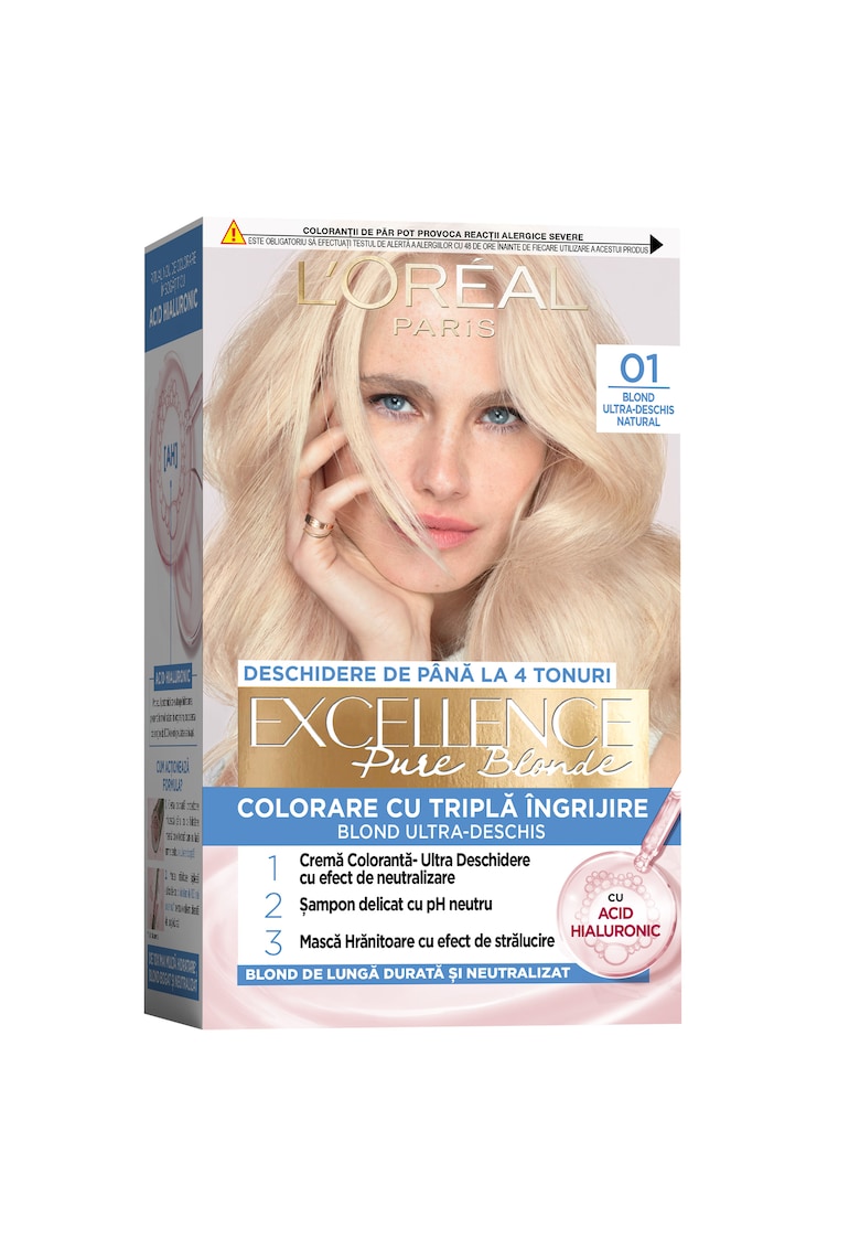 Caracteristici generale Zona corporala: par Tip: luxury Tip produs: vopsea de par Set: nu Rezistenta: permanenta Componenta: cu amoniac Forma/Textura: crema Tip par: normal Gama: excellence creme Beneficii: acopera firele albe Numar bucati/set: 1 Continut pachet: 1 x vopsea de par Cantitate: 192 ml Culoare Nuanta: blond ultra-deschis natural Cod culoare: 01 Culoare: bej deschis