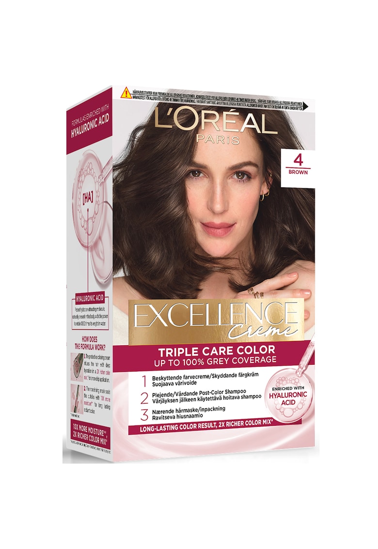 Caracteristici generale Zona corporala: par Tip: clasic Tip produs: vopsea de par Set: nu Rezistenta: permanenta Componenta: cu amoniac Forma/Textura: crema Tip par: normal Gama: excellence creme Beneficii: revitalizare