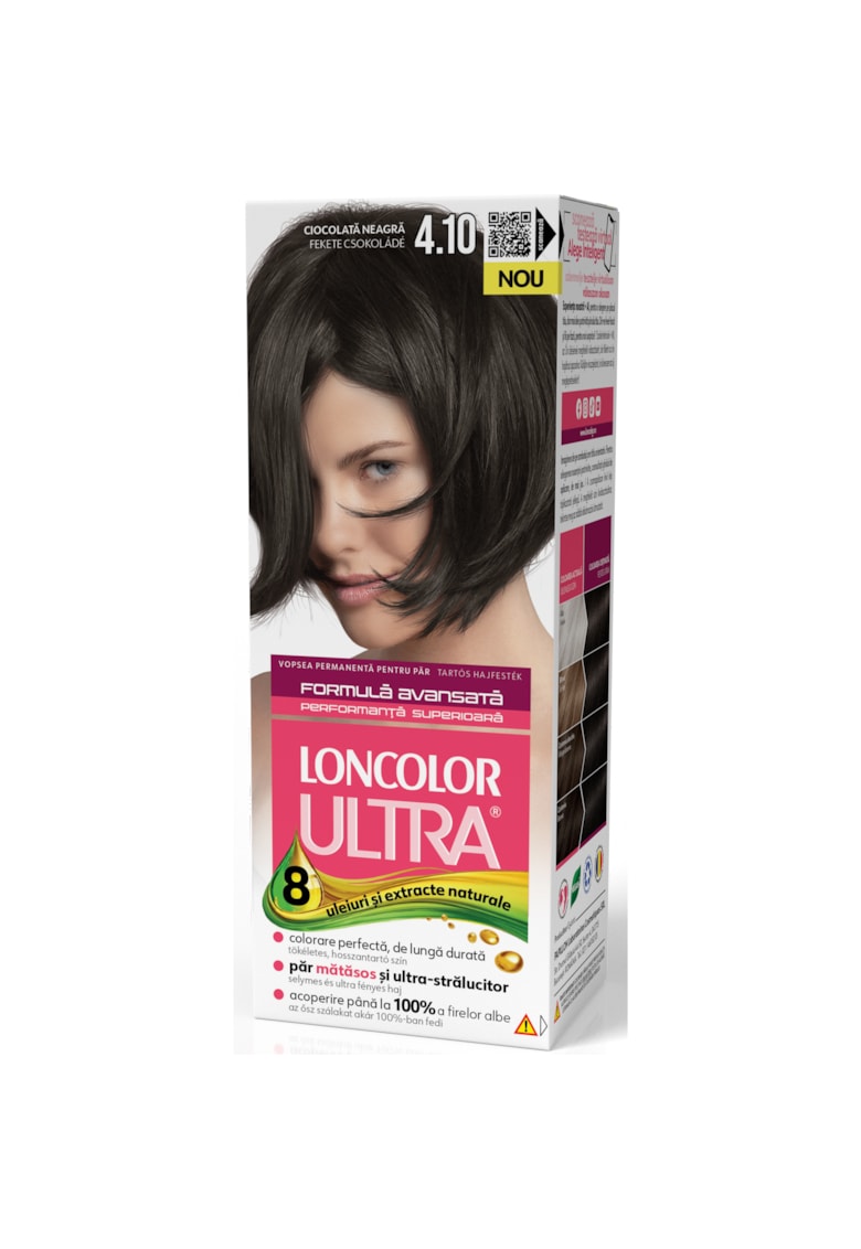 - 1 x vopsea de par Cantitate: 100 ml Culoare Nuanta: ciocolata neagra Cod culoare: 4.10 Culoare: brunet