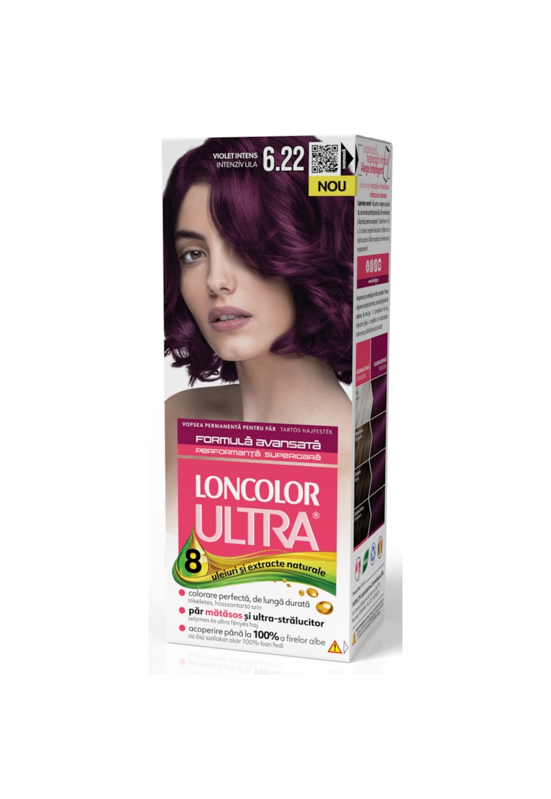 - acoperirea firelor albe Numar bucati/set: 1 Continut pachet: 1 x vopsea de par Culoare Nuanta: violet intens Cod culoare: 6.22 Culoare: violet