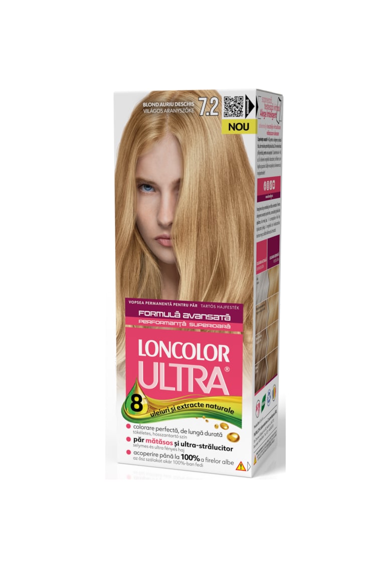 - acoperirea firelor albe Numar bucati/set: 1 Continut pachet: 1 x vopsea de par Culoare Nuanta: blond auriu deschis Cod culoare: 7.2 Culoare: blonda