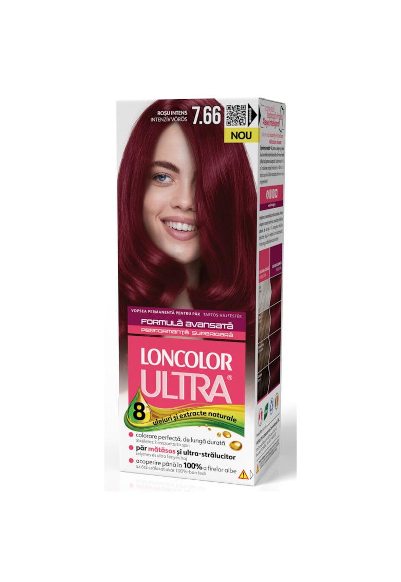 Caracteristici generale Zona corporala: par Tip: clasic Tip produs: vopsea de par Set: nu Rezistenta: permanenta Componenta: cu amoniac Concentratie oxidant: 1.5% Forma/Textura: lichid Tip par: normal Gama: ultra Beneficii: aplicare uniforma Numar bucati/set: 1 Continut pachet: 1 x vopsea de par Culoare Nuanta: rosu intens Cod culoare: 7.66 Culoare: roscat