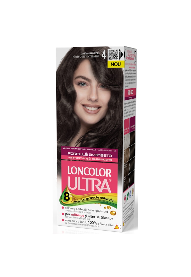 - acoperirea firelor albe Numar bucati/set: 1 Continut pachet: 1 x vopsea de par Culoare Nuanta: castaniu mediu Cod culoare: 4 Culoare: saten