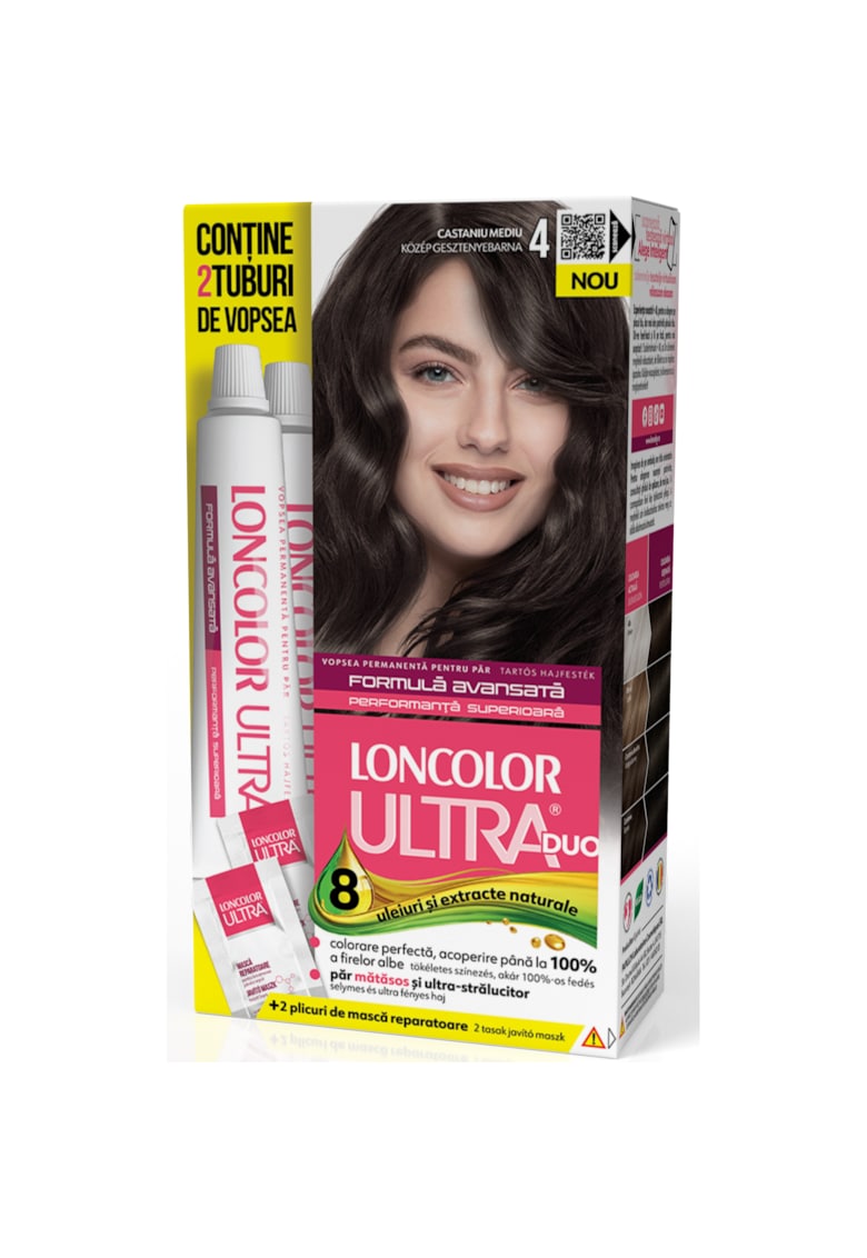 - acopera firele albe Numar bucati/set: 1 Continut pachet: 1 x vopsea de par Culoare Nuanta: castaniu mediu Cod culoare: 4 Culoare: saten