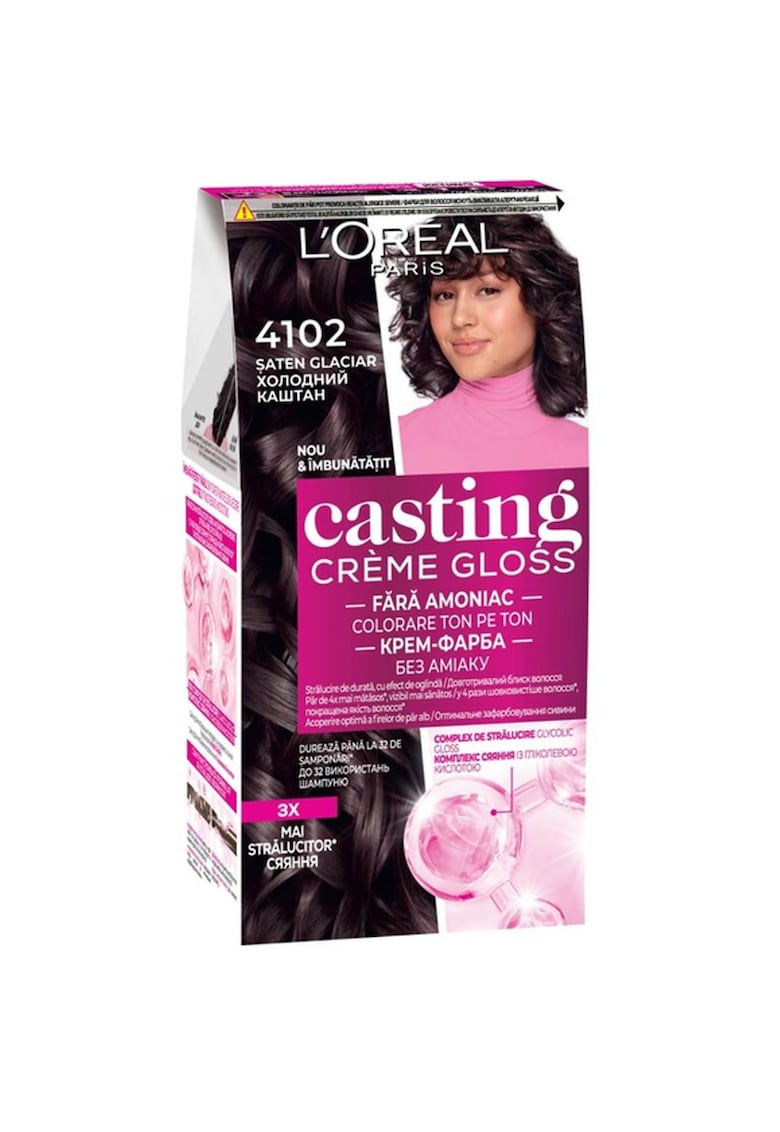 Caracteristici generale Zona corporala: par Tip: clasic Tip produs: vopsea de par Rezistenta: semi-permanenta Componenta: fara amoniac Forma/Textura: crema Tip par: normal Gama: casting crème gloss Beneficii: lunga durata